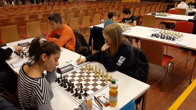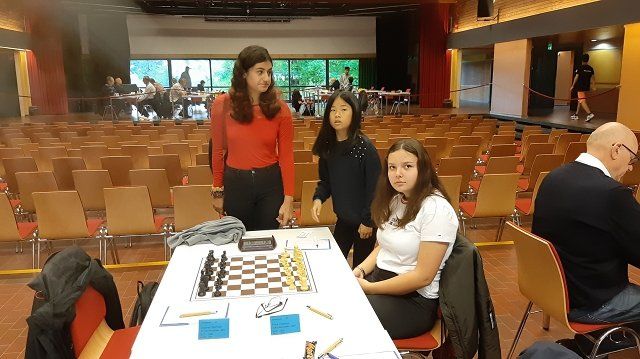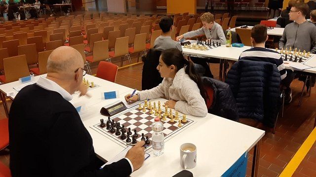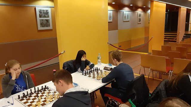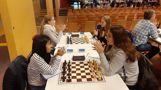 In der ersten Runde konnten die deutsche U 18, 18w und 12w gewinnen. Die U 12 verlor leider glatt mit 0:4..