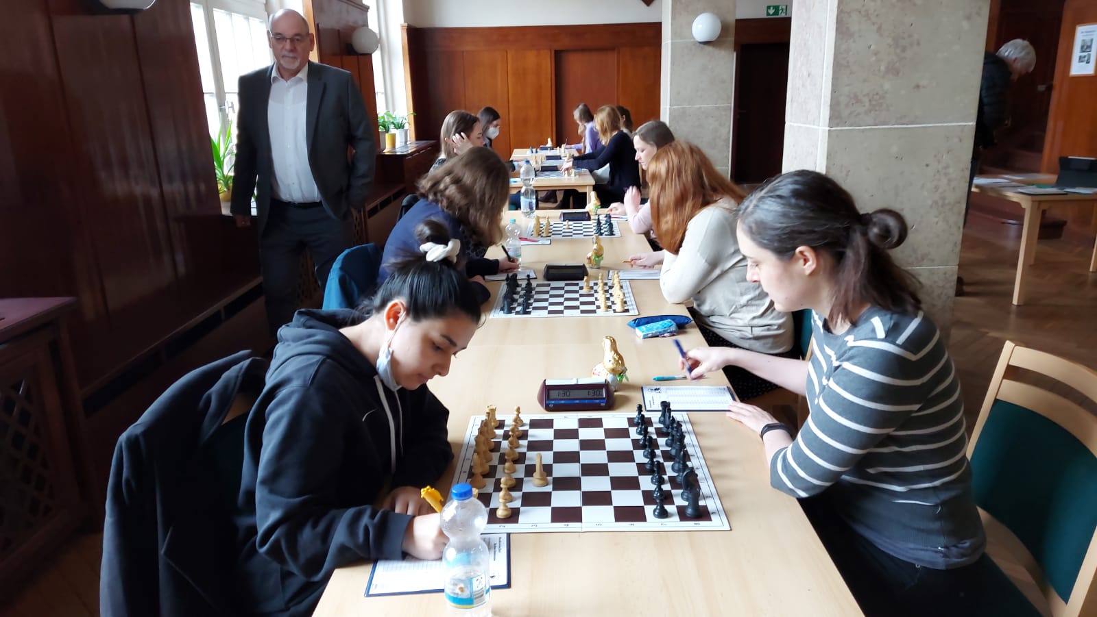 Start war leider eine Niederlage von Carina, die nicht ganz in die Vorbereitung kam. Julia an 1 einigte sich auf Remis zum 0,5:1,5 und Aleksandra glich mit einem schönen Sieg aus.