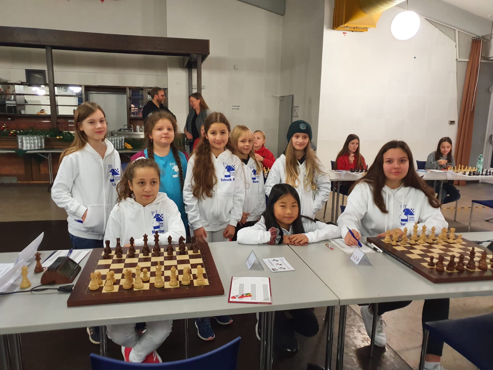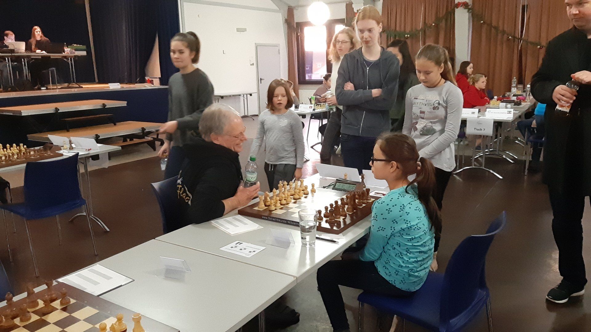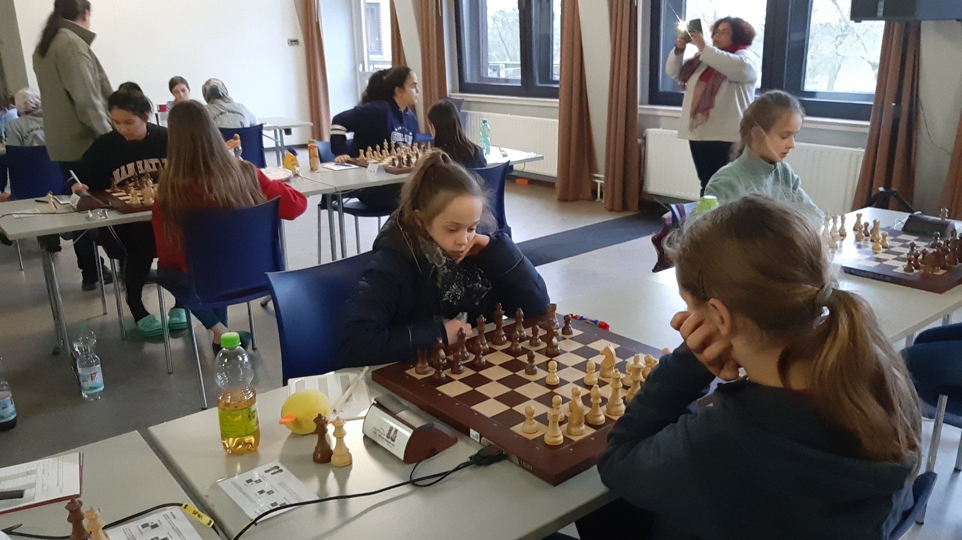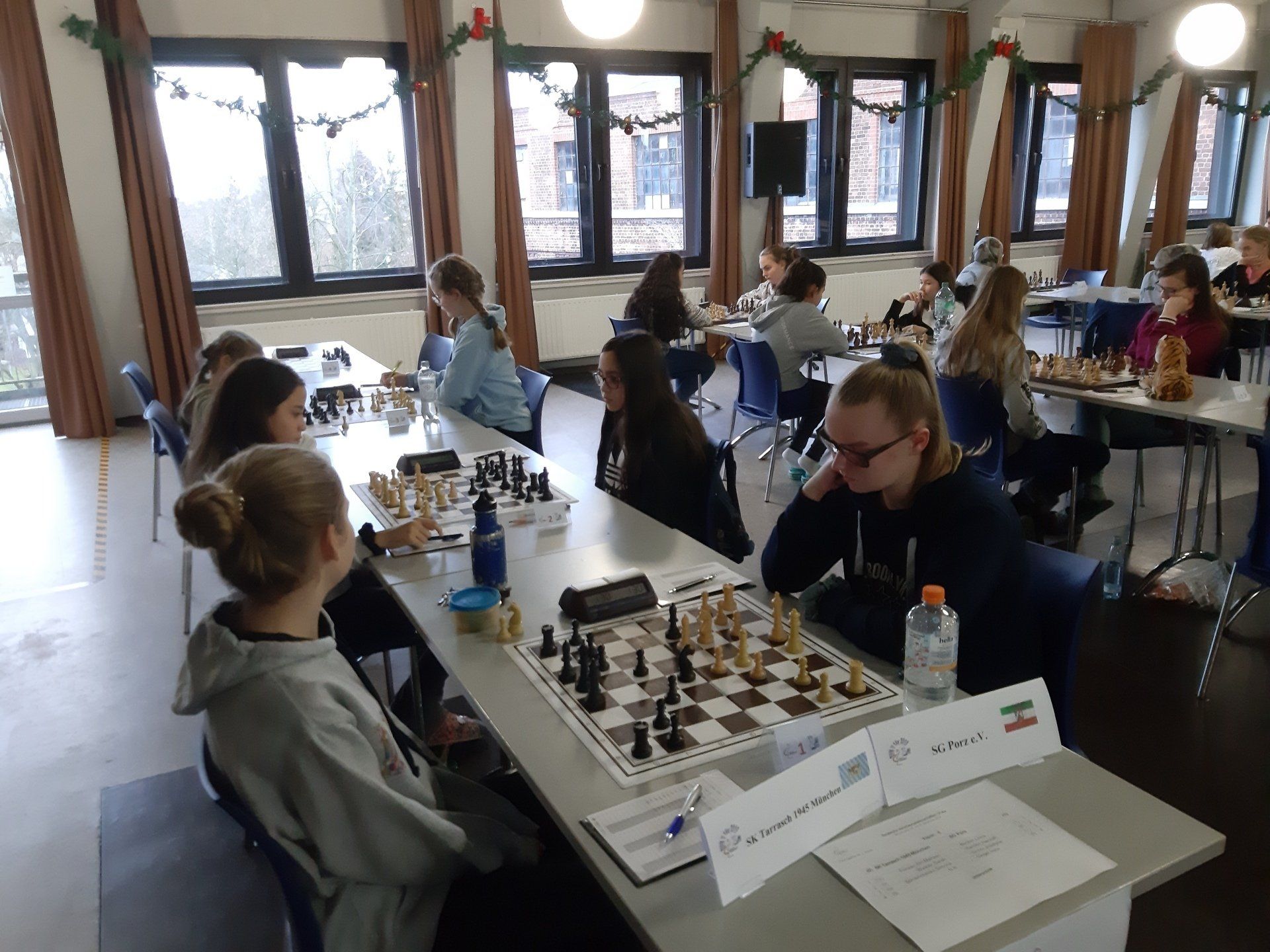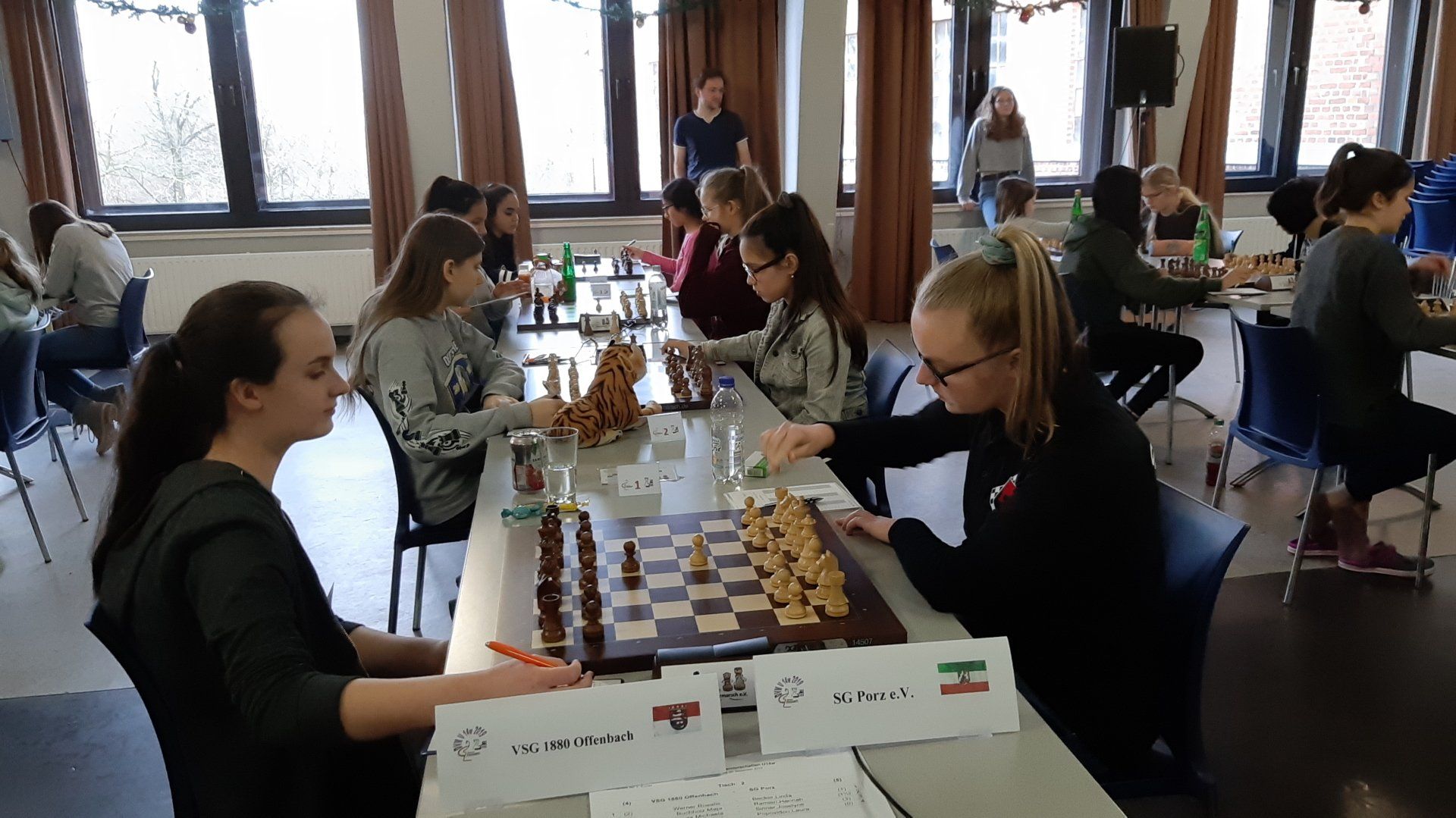 Pünktlich um 8.30 Uhr konnten Eberhard und dann Swenja die DVM der Mädchen U 14 eröffnen. Die 1. Runde ist dabei eher ein einsortieren,da die obere Hälfte gegen die untere Hälfte spielt.