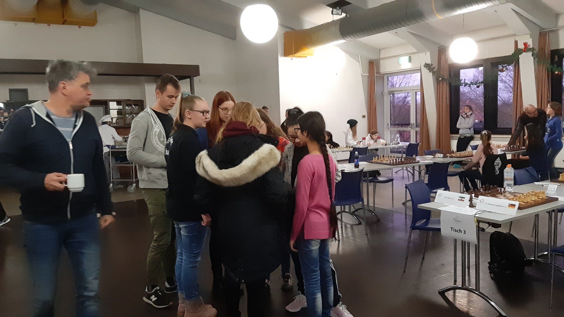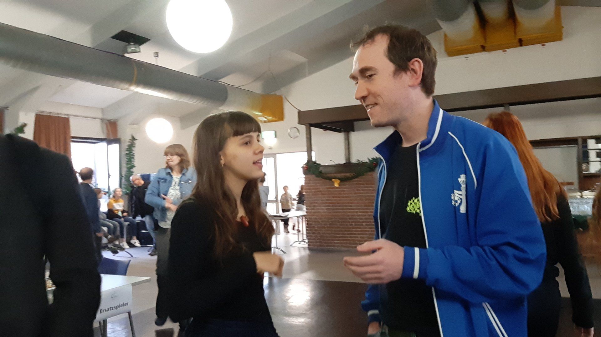 Die vorletzte Runde hat begonnen und um den Mädchen nochmal mut zumachen für die beiden Runden, kam Malte Ibs (DSJ- Vorsitzender) vorbei um ein paar Worte an die Spielerinnen zu richten.