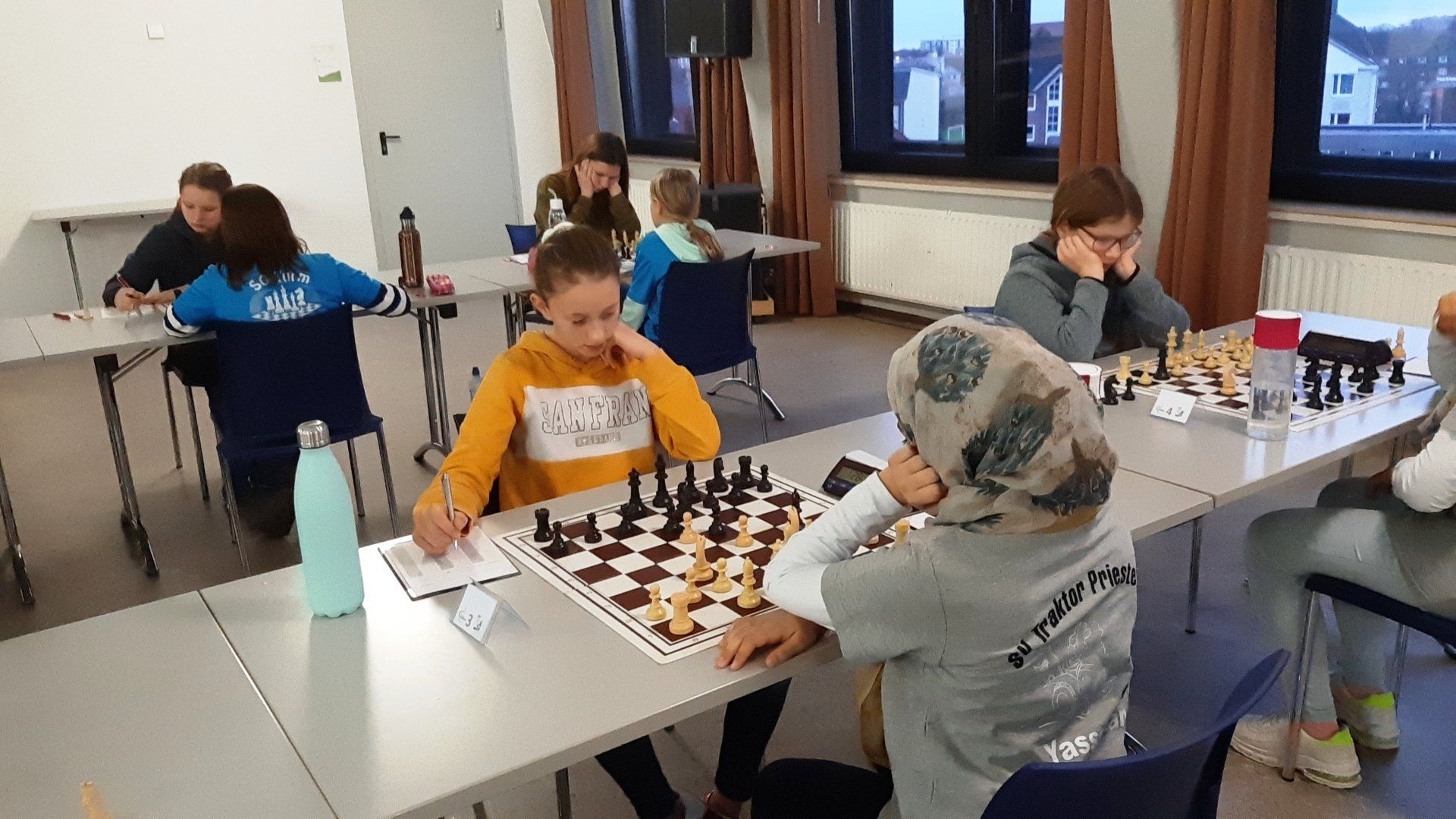 Nach 2x ca 5 Stundenpartien reichten Katharina B. heute 3,5 h um ihr Spiel zu beenden. Da sie gewann kann sich auch der Elmshorner SC über einen Teamerfolg freuen.