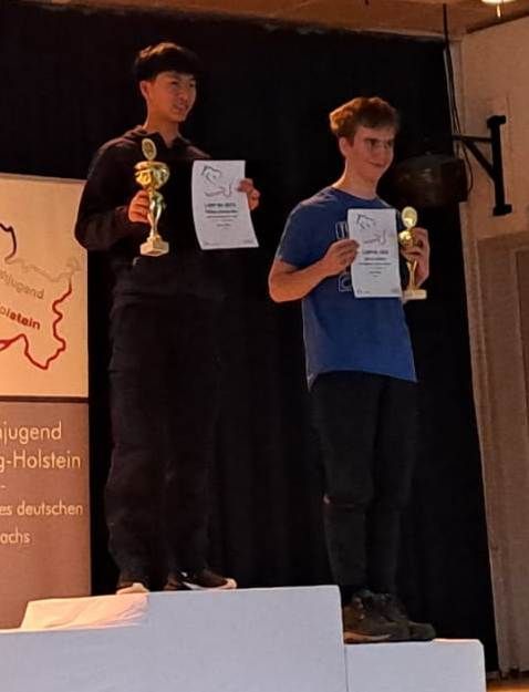 nach der Siegerehrung ging es für Vanessa und Philipp um die Organisation der Stichkämpfe um die DJEM- Teilnahme. Von der SJSH wurde der 20.04. als Termin anvisiert und weder Jonas (DB Kiel U 18- ist da noch in den USA) noch Helene (LSV U 18w- ist für das Schulschafinale in München) hätten an diesem Termin spielen können. Bei der Suche nach einem anderen Termin wurde von der SJSH angemerkt, dass man die Meldung möglichst kurzfristig machen müsse und wenn der Termin 20.04. nicht gehalten werden könne, dann wären beide TuRaner Kampflos weiter. Beide Spieler aus unserem Verein wollten so jedoch nicht zur Deutschen kommen und stimmten einem Stichkampf für noch heute zu.