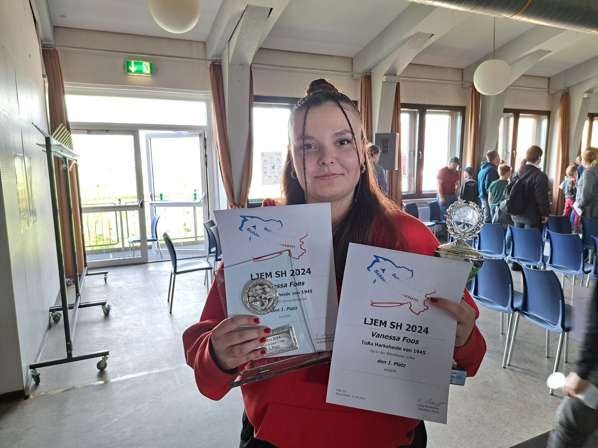Bei der Siegerehrung konnten wir uns dann über 2 Landestitel freuen. Vanessa gewann die U 18w und Philipp zusammen mit Jonas R. die U 18 MK. zusätzlich zu ihrem Titel blieb Vanessa auch in der VMK der U 18 siegreich. Für karolina blieb es trotz Gewinn der Abschlußrunde bei Platz 4. Auch Michelle wurde nach Zweitwertung 4. der U 18w.