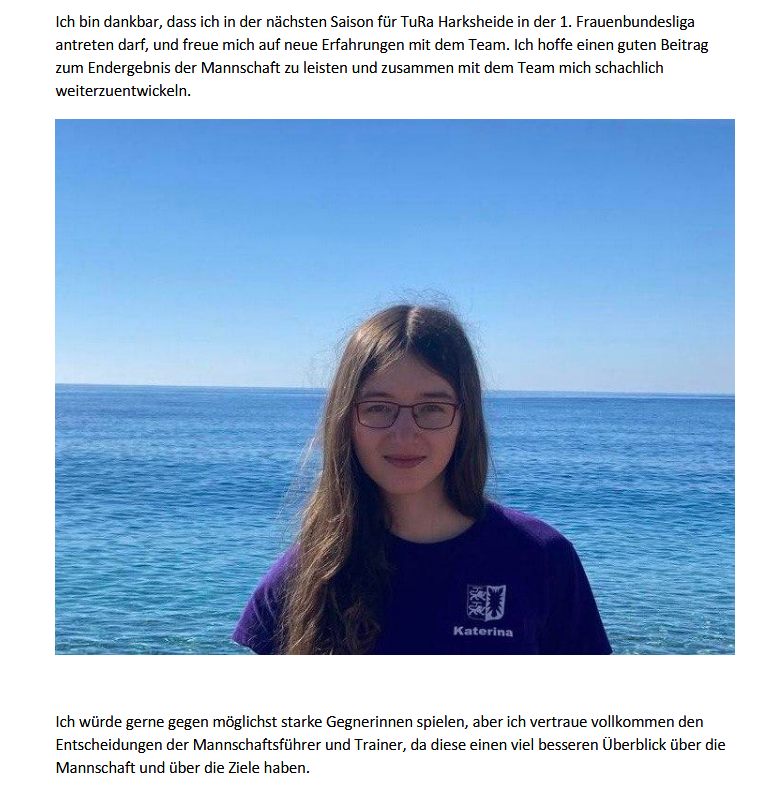 Nach dem Verlauf der Partien hätte es eventuell auch ein etwas knapperes Ergebnis werden können. Jeweils Remis erspielten sich Laura (1), Zala (2) und Katerina (4). Morgen gibt es das wichtige Match gegen Hemer und natürlich hoffen wir dabei auf mehr Spielglück.