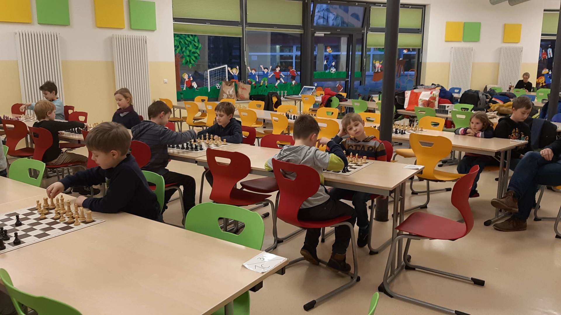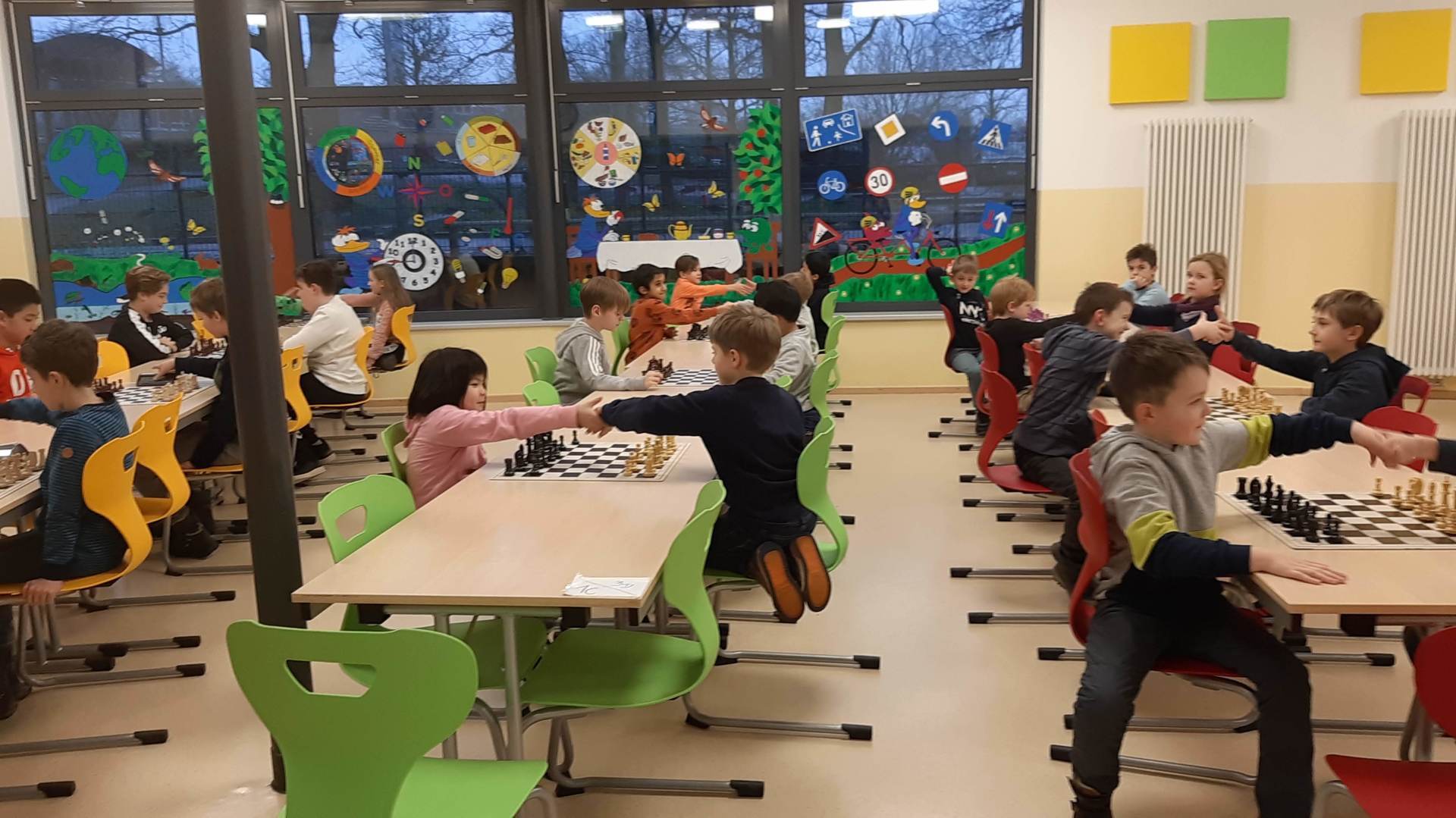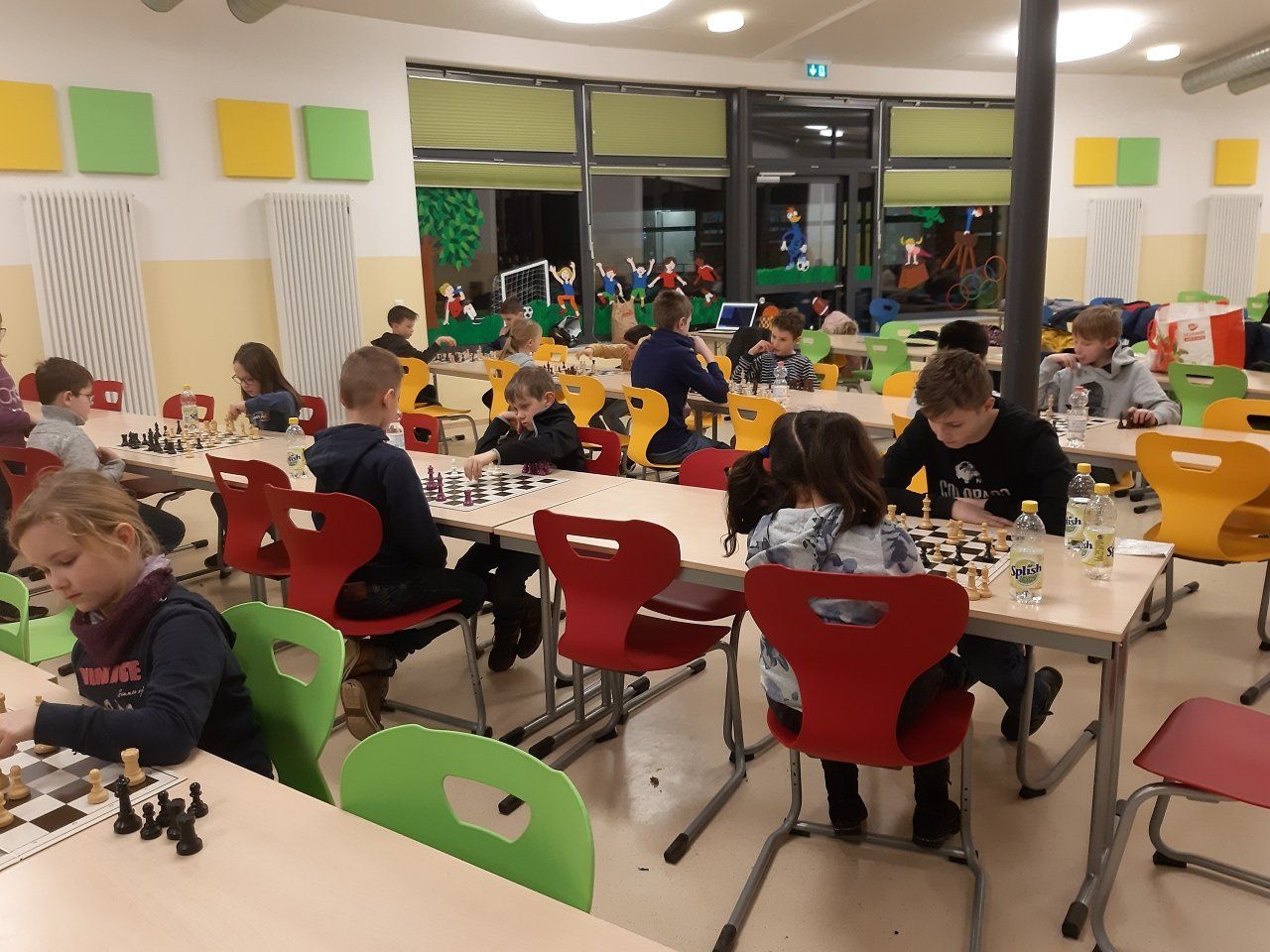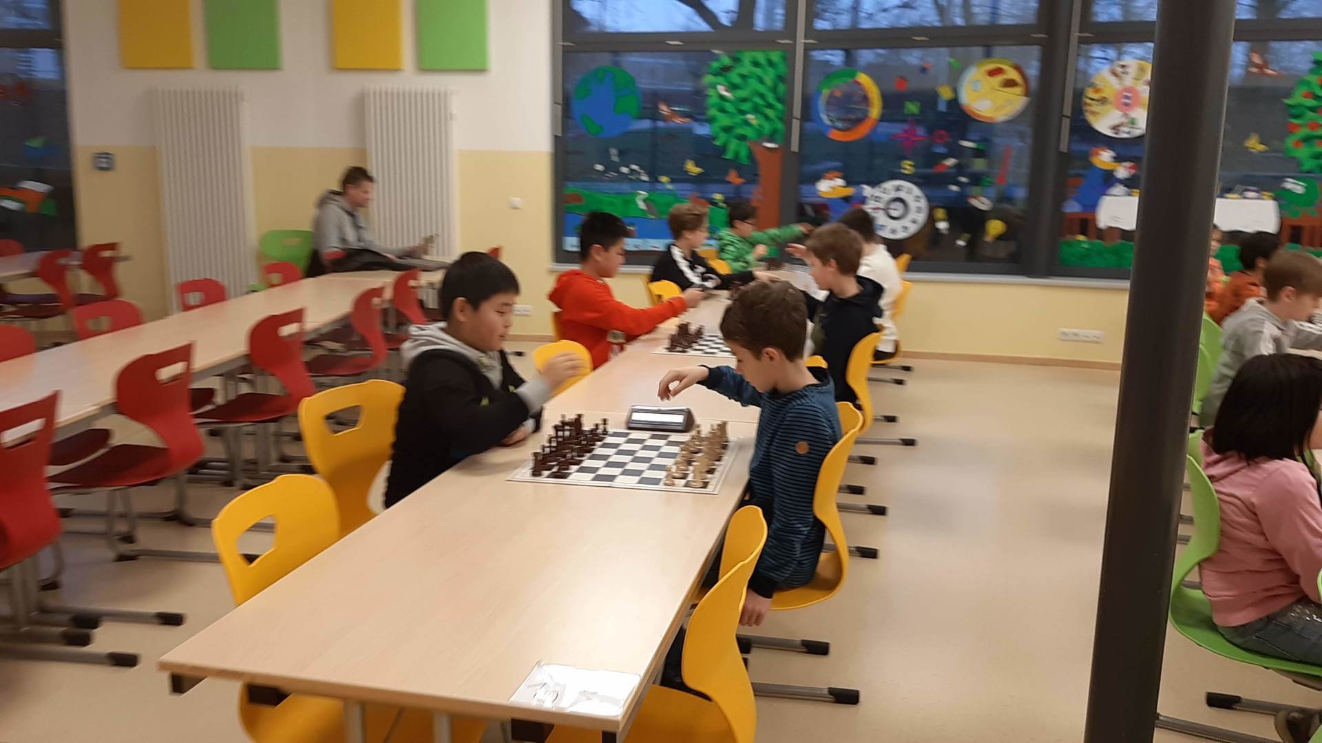 Montag 16.30 Uhr in der MENSA fer GS Heidberg! 20 Mädchen und Jungs sind vorbei gekommen, wobei wieder einige Kinder zum 1x bei einem Schachturnier unserer Serie "Schule trifft Verein" dabei gewesen sind.