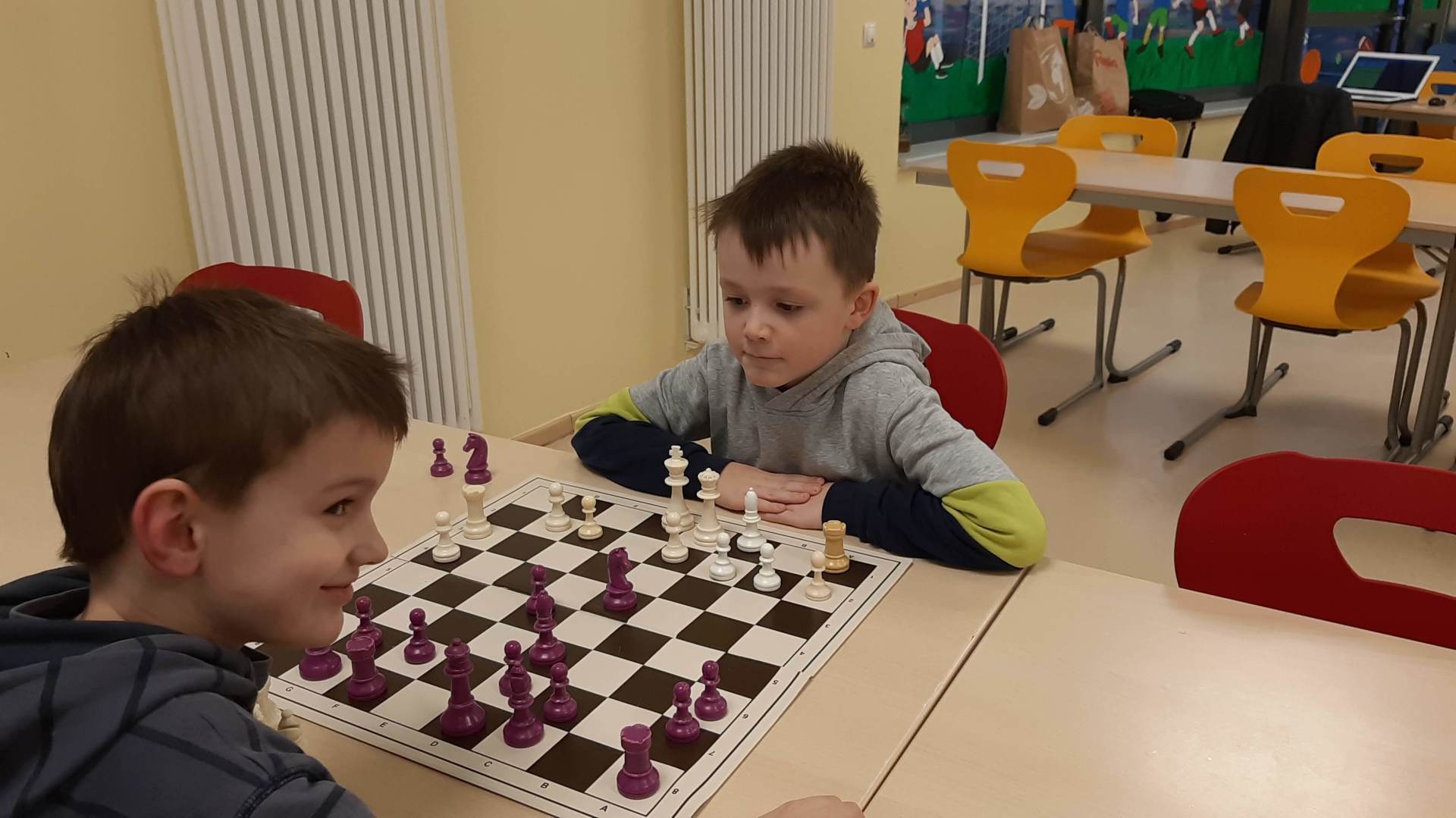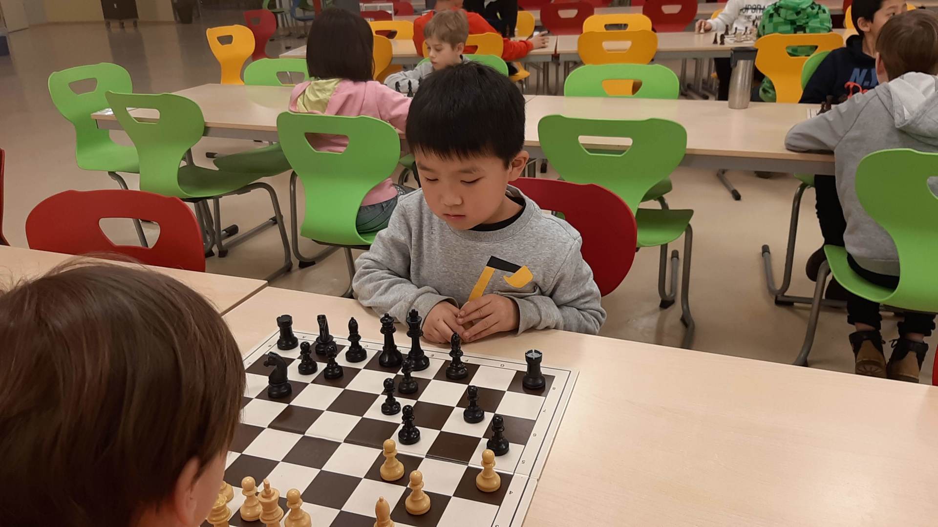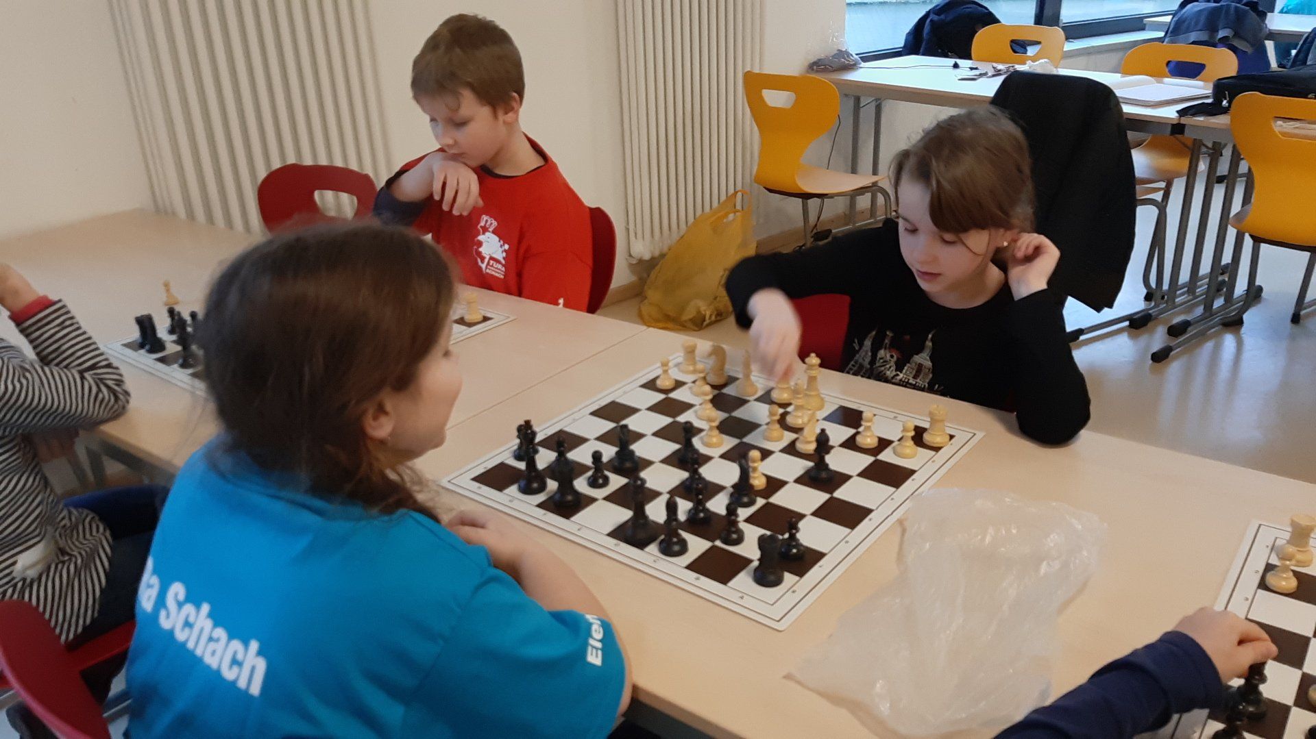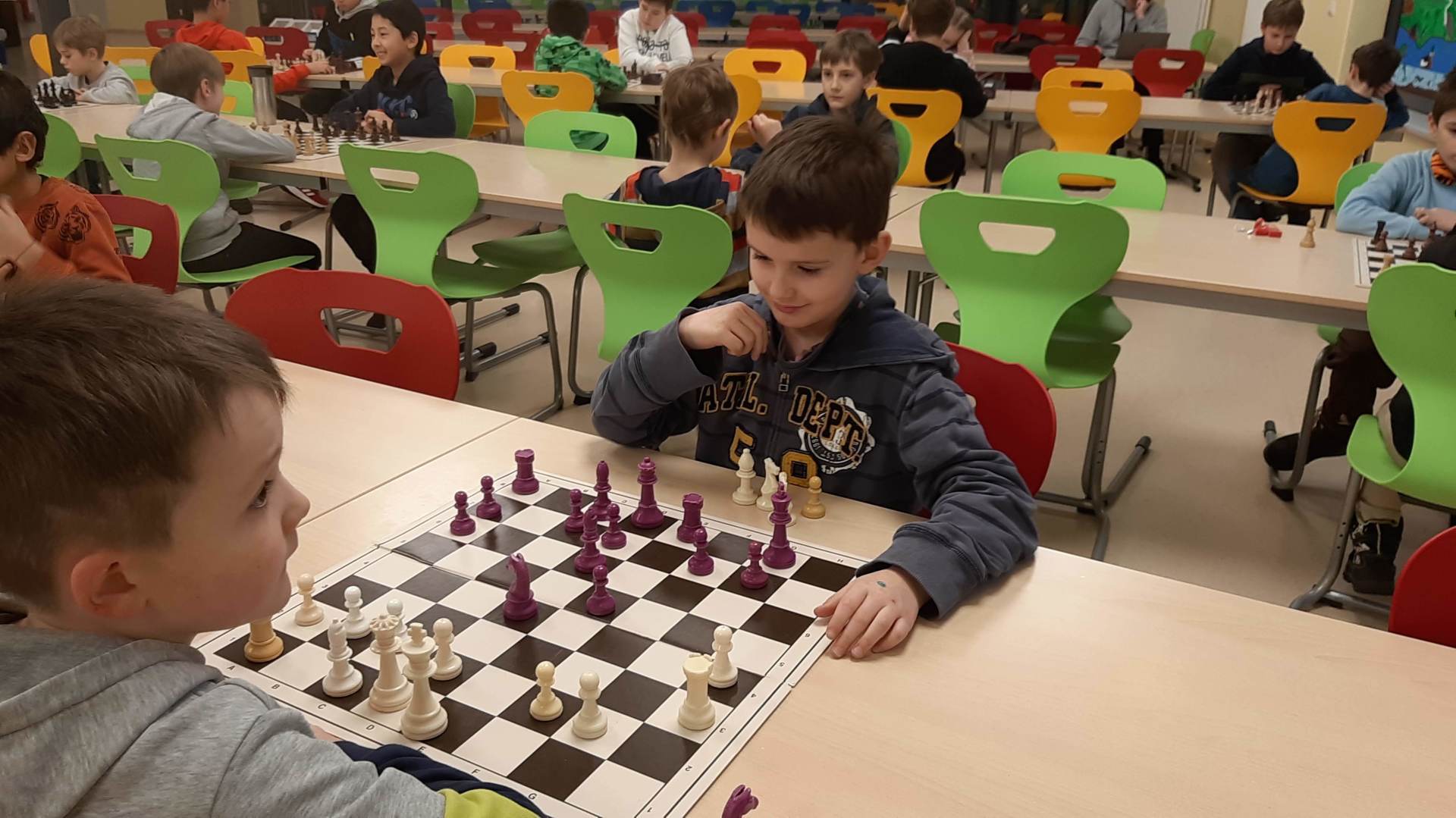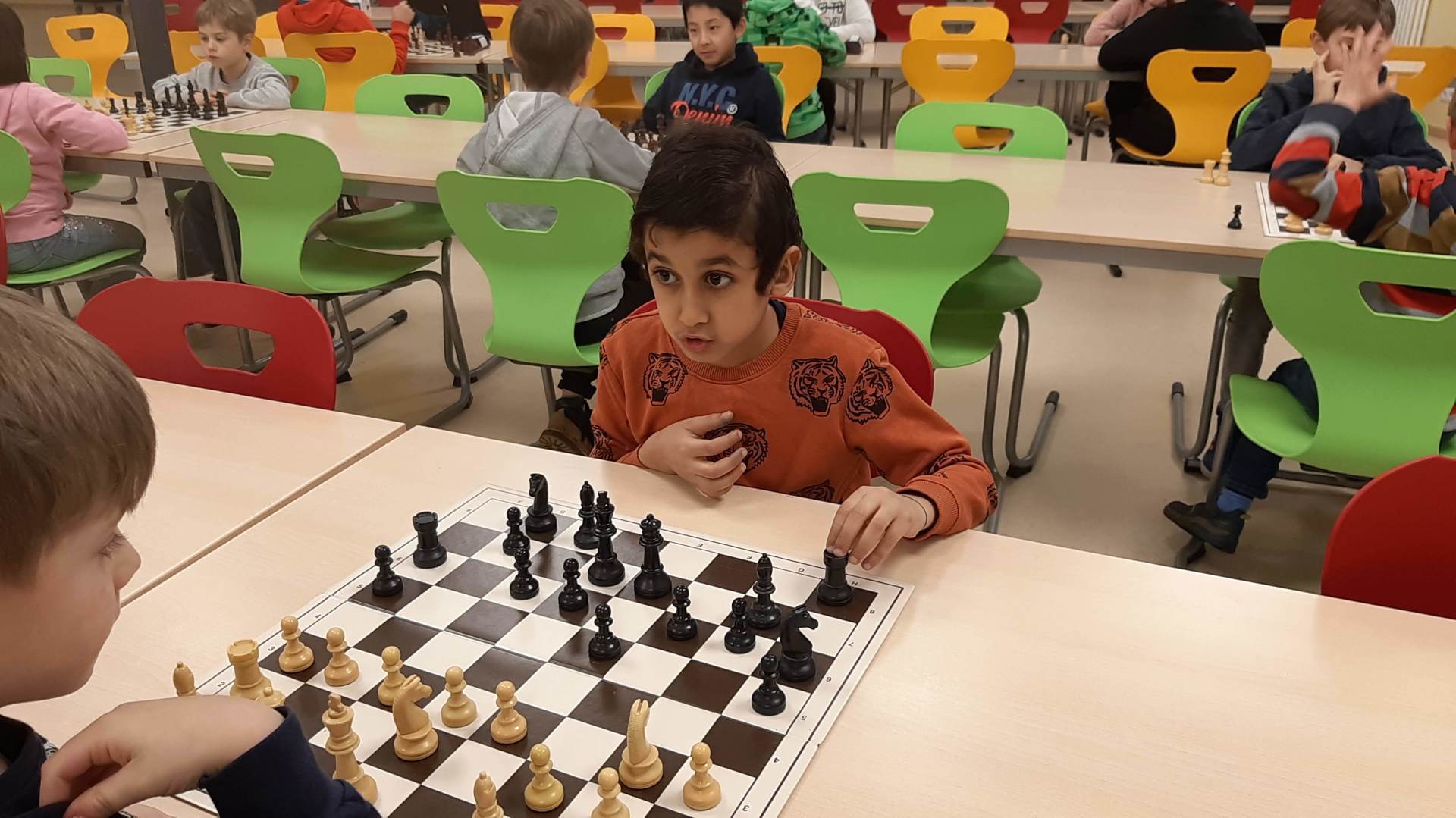 Montag 16.30 Uhr in der MENSA fer GS Heidberg! 20 Mädchen und Jungs sind vorbei gekommen, wobei wieder einige Kinder zum 1x bei einem Schachturnier unserer Serie "Schule trifft Verein" dabei gewesen sind.