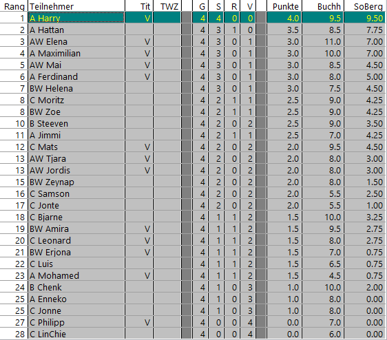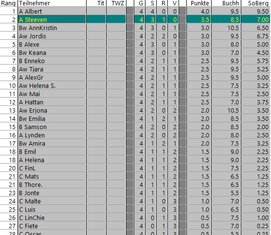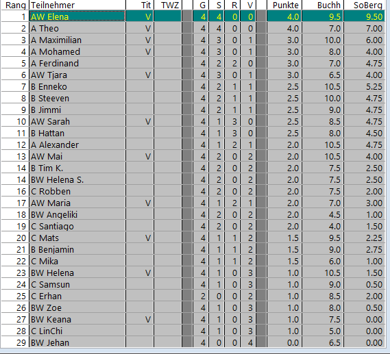 14 Mädchen und Jungs freuten sich auf 5 Runden Schach und am Ende konnte Nhat Minh unser kleines Turnier gewinnen. Die weiteren Preise gingen an Maria und Johnny.